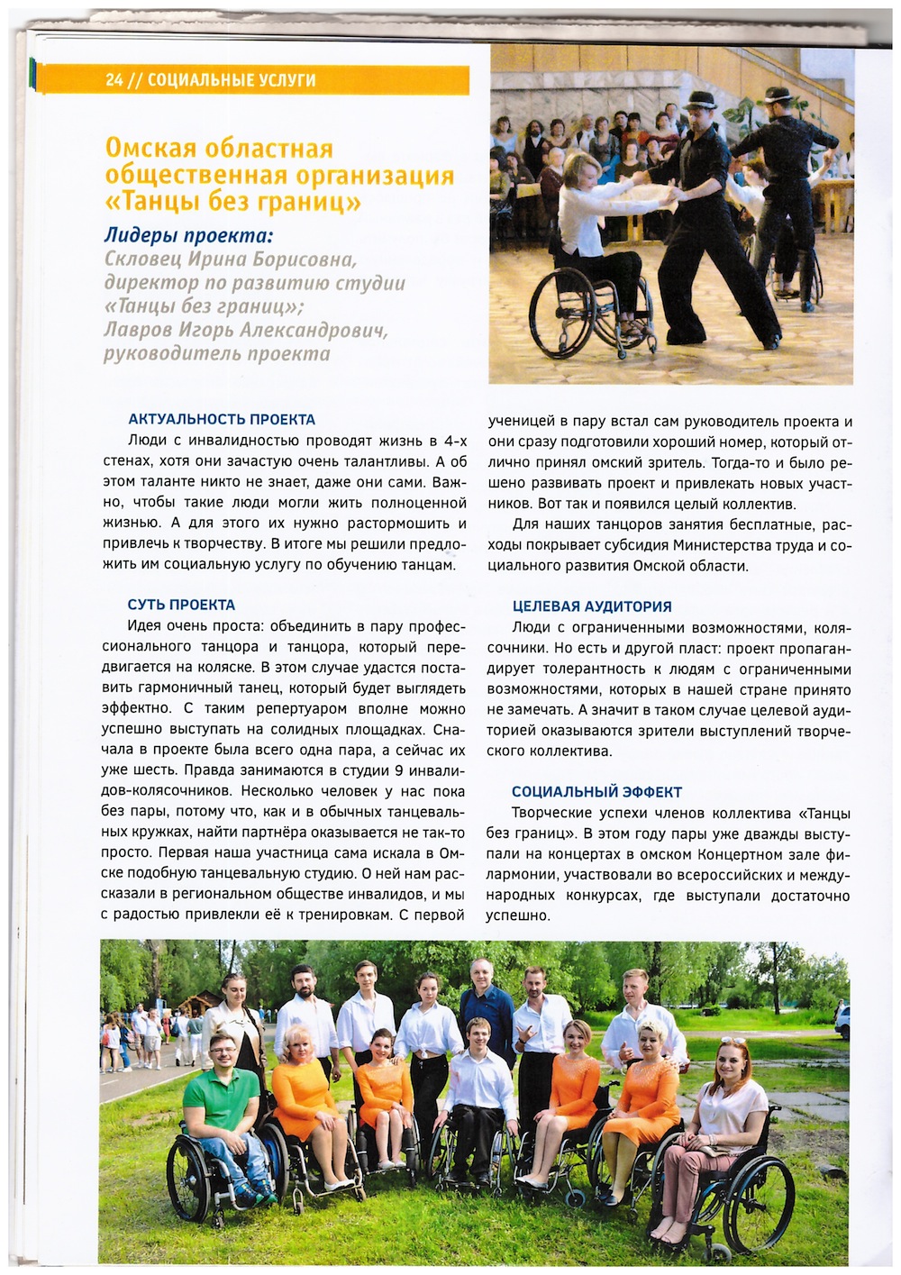 __04.10.2024____ Совсем скоро зрители увидят премьеру нашего самого амбициозного проекта - спектакль "Танцуй по другому" созданного при поддержке Флнда президентских грантов. А пока критичиским взглядом на всё происходящие на тренировочной площадке смотрит режиссер спектакля Олег Берков __24.09.2024____ В 2024 году Танцы Без Границ исполнилось 15 лет. Предлагаем Вам вместе с нами перелистать страницы наших проектов. Мы благодарим за поддержку наших проектов Министерство и социального развития Омской области Министерство культуры Омской области Администрацию города Омска Фонд президентских грантов Президентский фонд культурных инициатив Огромная благодарность за информационную поддержку наших проектов ОМСКИЙ МЕДИА-ХОЛДИНГ и лично его руководителю Козловскому Юрию Геннадьевичу __11.09.2024____ -- Вчера Александр Кизеев вместе с Татьяной Грачевой провели мастер класс по танцам на колясках для детей с ОВЗ, отдыхающих на базе отдыха "Буревестник". Такие мероприятия невероятно важны для реабилитации детей с ограниченными возможностями здоровья __23.08.2024____ Готовимся к показу нашего невероятно амбициозного проекта "Танцуй по другому", поддержанного Фондом президентских грантов. Приятно, когда тренировку снимают профессионалы- это способствует узнаваемости коллектива и привлечению в него новых участников __24.07.2024____ Продолжаем работать над своим самым амбициозным проектом "Танцуй по другому", поддержанным Фондом президентских грантов Уже этой осенью наши зрители увидят премьеру спектакля __07.07.2024____ Видео Сегодня при поддержке Министерства труда и социального развития Омской областисостоялась премьера пластического спектакля "7" Показ прошел на сцене музыкального театра. Зал был полон. Было много аллодисментов и цветов . __22.06.2024____ Участники проекта, занятые в подготовке хореографической композиции «Румба» для исполнения в проекте инклюзивный хореографический спектакль «Танцуй по другому». поддержанного Фондом Президентских грантов, завершили подготовку«Румбы» получилась очень интересная интерпретация этого танца. __15.06.2024____ Выступили в Омской крепости на семейном фестивале «Крепкая семья» в рамках проекта «Омская семья: от А до Я». Исполнили любимую барыню __07.06.2024____ До показа пластического спектакля "7" остался ровно месяц. Это будет не совсем обычный проект. Впервые вместе с нами выступят студенты Омского музыкально-педагогического колледжа танцев и мимику для передачи эмоций. __16.05.2024____ Мы продолжаем постановку хореографической композиции "Румба" и отрабатываем исполнение фигур в парах с участниками проекта, исполняющими «бальные танцы» для исполнения в проекте инклюзивный хореографический спектакль «Танцуй по другому». поддержанного Фондом Президентских грантов. __23.04.2024____ Мы завершили изучение фигур хореографической композиции «Румба» с участниками проекта, исполняющими «бальные танцы» для исполнения в проекте инклюзивный хореографический спектакль «Танцуй по другому». поддержанного Фондом Президентских грантов. __04.04.2024____ Хореограф-постановщик проекта инклюзивный хореографический спектакль «Танцуй по другому». поддержанного Фондом Президентских грантов, приступил к постановке хореографической композиции «Румба» с участниками проекта. __29.03.2024____ 29 марта прошли два заключительных мастер-класса в рамках проекта инклюзи
