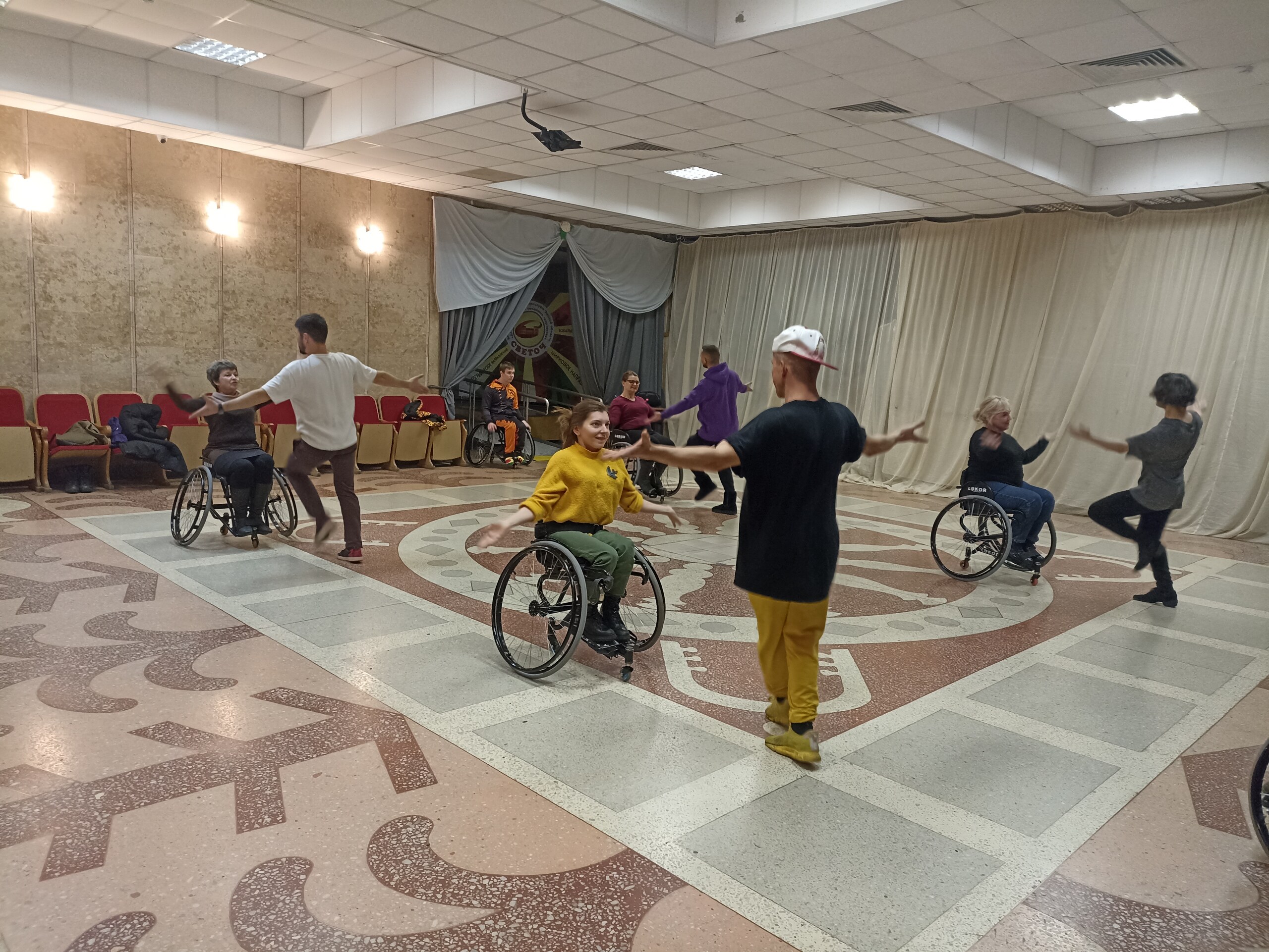 __22.04.2025____ Танцевальные узоры России - новая хореографическая сказка, созданная при поддержке Президентского фонда культурных инициатив. Лёгкая добрая и яркая история-путешествие по разным краям нашей необъятной страны, со своими неповторимыми культурным колоритами. Это своеобразная притча о передаче традиций сквозь поколения. Впервые на сцене танцоры на колясках представят такое разнообразие народной хореографии. Волшебную атмосферу создадут оркестр народных инструментов под руководством Алексея Дубянского и наши специальные гости. Прикоснитесь к богатейшему наследию танцевального творчества нашей Родины! __21.04.2025____ хореографическая композиция "Татарский танец - сорванные посиделки" готова к показу. Получилось весело и необычно. Зрители будут удивлены нашей "несерьёзностью". Полным ходом идет подготовка к премьере.