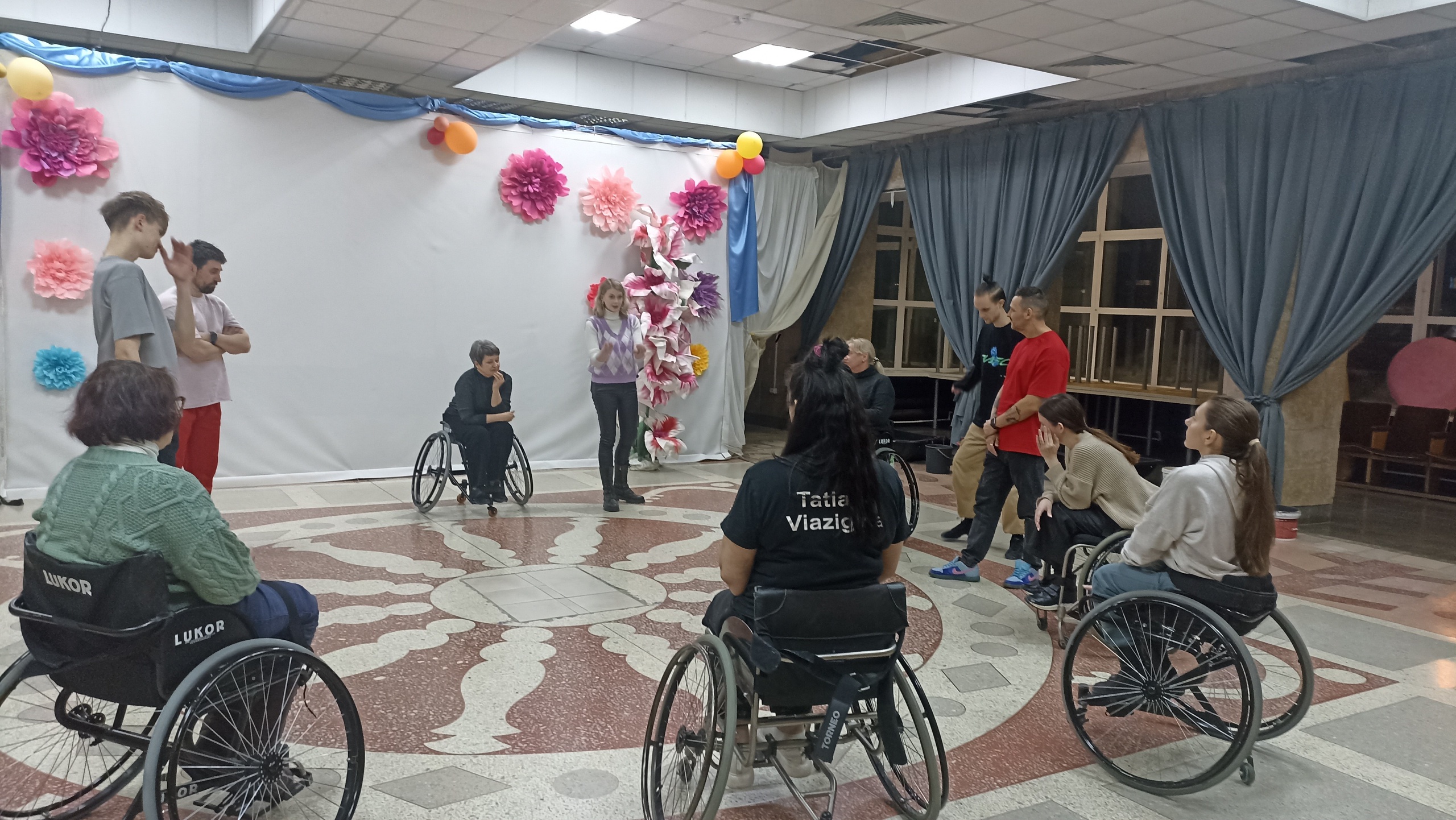 __22.03.2025____ Выступили на открытии фестиваля ПОДА Футбол на электро колясках "Моя игра" Совместили приятное с полезным. И зарядили энергией зрителей и участников фестиваля и провели генеральную репетицию исполнения хореографической композиции "Кадриль" Зрители тепло аплодировали нашим танцором и теперь мы знаем она готова к исполнению в хореографической сказке "Танцевальные узоры России" Проект поддержан Президентский фонд культурных инициатив __17.03.2025____ Сегодня нашу репетицию вновь вела актриса Лицейского театра Евгения Суровая. У нас завершился цикл мастер-классов, посвященных основам сценической композиции, балансу композиции, которая учитывают размещение актёров, реквизита и других элементов на сцене. Разобрали темы динамики пространства, использования глубины сценического пространства, чтобы создать интересные и динамичные композиции, работу с перспективой, чтобы усилить визуальные эффекты и поддержать внимание зрителя. Также работали на фокус внимания, энергию и выразительность. Мастер-классы Евгении придают больше уверенности участникам хореографической сказки "Танцевальные узоры России" и помогают больше ощущать себя не только танцорами, но и актерами. Проект поддержан Президентский фонд культурных инициатив __21.02.2025____ Готовимся к показу хореографической сказки "Танцевальные узоры России". До премьеры остаётся 4 месяца. Проект поддержан Президентский фонд культурных инициатив __06.02.2025____ У нас уже прошло четыре мастер-класса по основам актерского мастерства, которые ведет актриса Лицейского театра Евгения Суровая. 2 мастер-класса по подготовке своего психофизического аппарата к нагрузкам и 2 мастер-класса по изучению основ композиции, Участники мастер-классов кроме теоретической информации выполнили ряд упражнений. Мастер-классы по основам актёрского мастерства проходят в рамках проекта хореографическая сказка "Танцевальные узоры России". Проект поддержан Президентский фонд культурных инициатив __24.01.2025____ Приступили к изучению фигур хореографической композиции "Калинка" Для нас это очень ответственный момент поскольку "Калинка" одна из самых популярных и самых известных хореографических композиций . Калинку исполняет Государственный академический хореографический ансамбль "Берёзка" имени Н.С. Надеждиной , На льду под калинку катались трёхкратная олимпийская чемпионка Ирина Роднина в паре с Александром Зайцевым . Мы конечно очень волнуемся получится ли у нас исполнить "Калинку" так чтобы зрители восхищались . Зрители смогут увидеть нашу интерпретацию "Калинки" уже этим летом во время показа Хореографической сказки "Танцевальные узоры России". Проект поддержан Президентским фондом культурных инициатив.